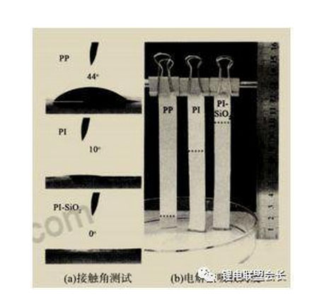 隔膜的潤濕性和潤濕速度對于鋰離子電池的運行具有重要的意義。為高效傳遞鋰離子,位于正、負極材料之間的隔膜須和電解液充分接觸,并且具備持久的電解液保持能力,反之則會使電池內(nèi)阻增大,降低其使用性能。