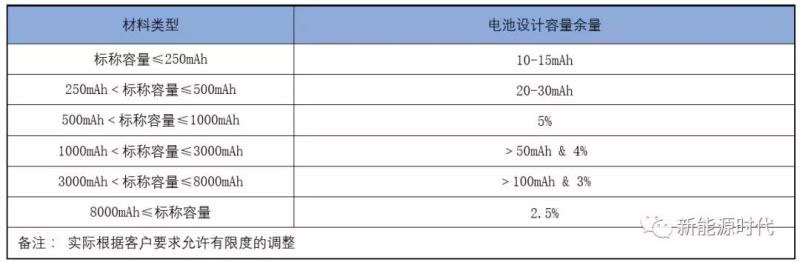 電池設(shè)計(jì)容量余量:因?yàn)椴僮?、設(shè)備等原因,同一批次的電池容量會呈正態(tài)分布,為保證整個(gè)容量分布基本處于標(biāo)稱容量以上,需要設(shè)定設(shè)計(jì)余量。