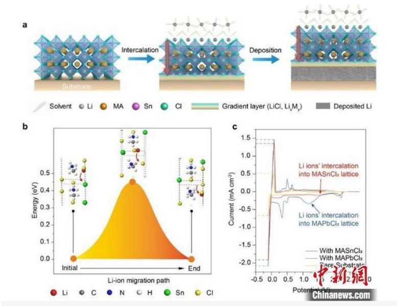 中新網(wǎng)合肥4月15日電 (記者 吳蘭)記者15日從中國科學(xué)技術(shù)大學(xué)獲悉,該?;瘜W(xué)與材料學(xué)院姚宏斌課題組和張國楨副研究員經(jīng)過與外部專家合作,近日在金屬鹵化物鈣鈦礦導(dǎo)鋰層的構(gòu)建并用于穩(wěn)定鋰金屬電池的研究中取得重要進(jìn)展。