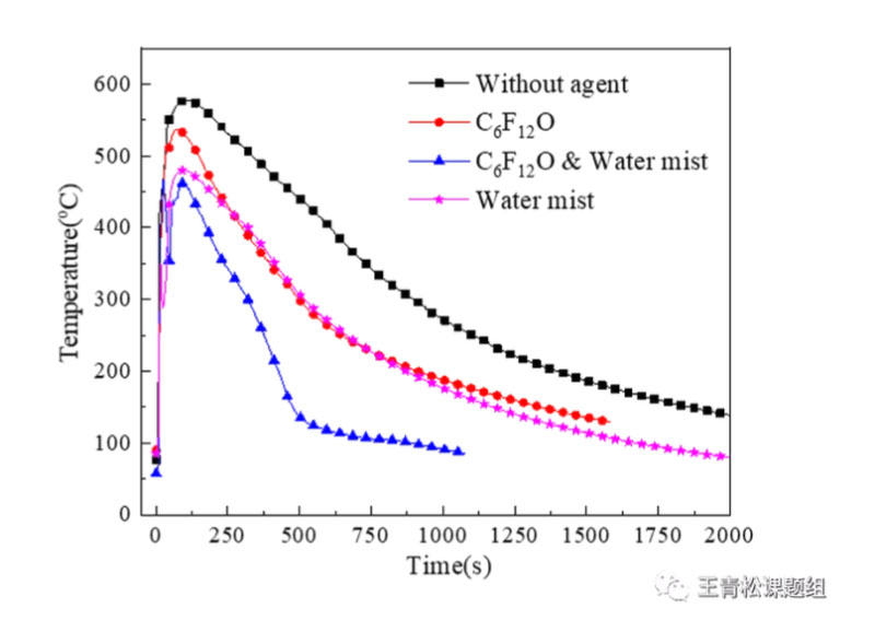 火災(zāi)科學(xué)國家重點實驗室王青松課題組實驗研究了全氟己酮(C6F12O)與細(xì)水霧聯(lián)合作用對鋰離子電池滅火和降溫的效果,為鋰離子電池系統(tǒng)的消防設(shè)計提供了重要理論依據(jù)和技術(shù)支撐。
