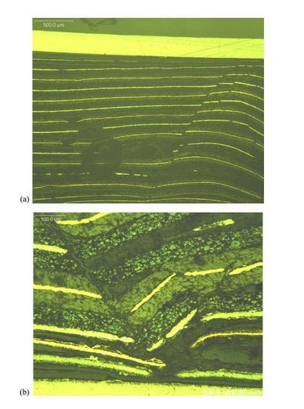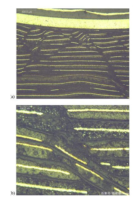 2)多層集流體斷裂:在剪切力的作用上電芯發(fā)生了多層集流體的斷裂,并呈現(xiàn)出角度為45度左右的斷裂線。