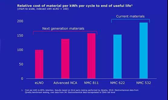 據(jù)了解,莊信萬豐當(dāng)前正在一種高能量鎳基正極材料,內(nèi)部也稱之為增強型鎳酸鋰(eLNO),其宣稱能量密度超過了當(dāng)前所有的三元體系。