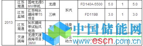表2:2013年中國海上風(fēng)電機組安裝情況