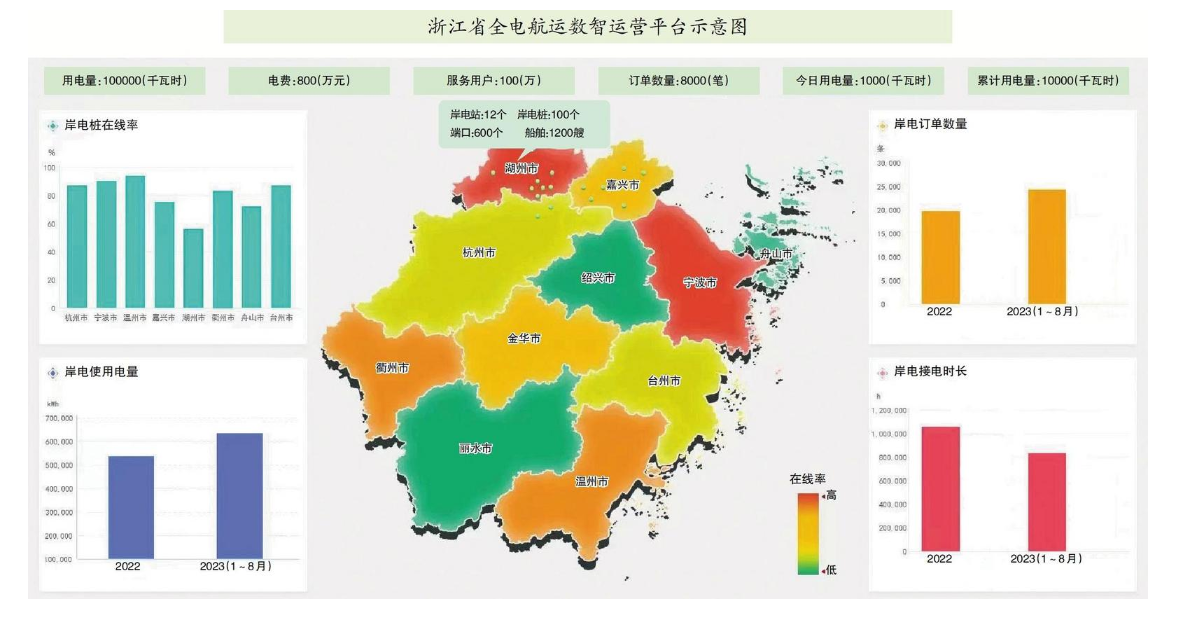 近日,由國網浙江電力和浙江省港航管理中心聯(lián)合建設、湖州供電公司承建的浙江省全電航運數智運營平臺在湖州建成投運,標志著浙江省岸電管理邁入數字化階段。該平臺打破了電力側和交通側數據壁壘,從浙江省交通數據樞紐獲取船舶和航道等信息,從國家電網“岸電云網平臺”獲取岸電設施資產、交易記錄、計費模型等信息,實現(xiàn)跨平臺數據集成貫通。湖州供電公司為其開發(fā)全景大廳、運行監(jiān)測、運維管理等16個一級功能點和57個二級功能點,實現(xiàn)岸電設施智能運維、智慧運營和岸電數據全景感知。目前,國網浙江電力正在加快推進全省岸電樁全部接入該平臺。
