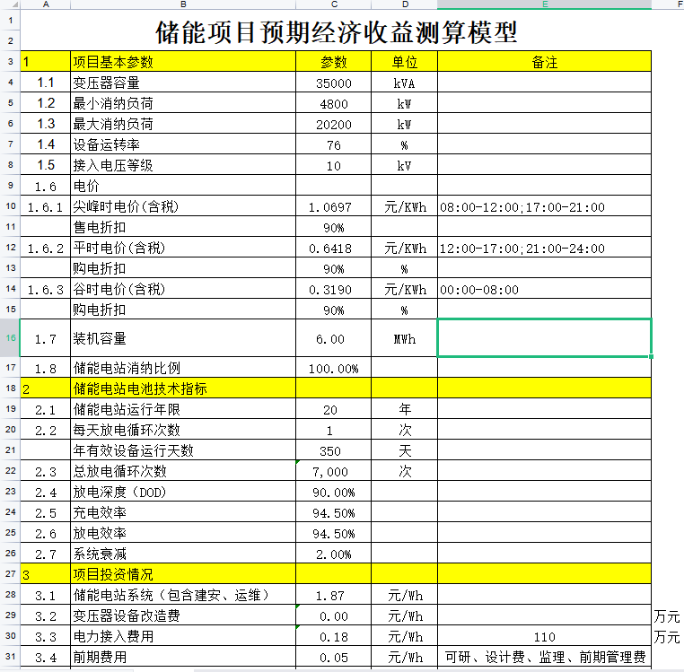 ? 基本假設(shè):投資成本1.8元/Wh,總投資1080萬元,放電深度DOD90%,充放電效率92%,儲能壽命為15年。