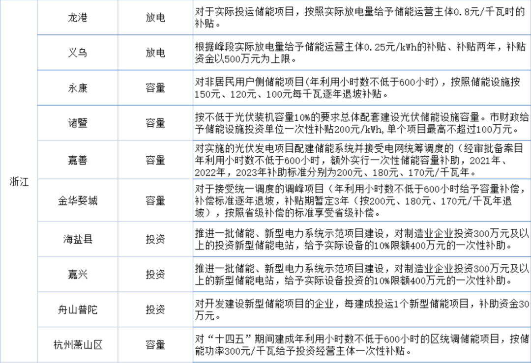 浙江省儲能補(bǔ)貼政策