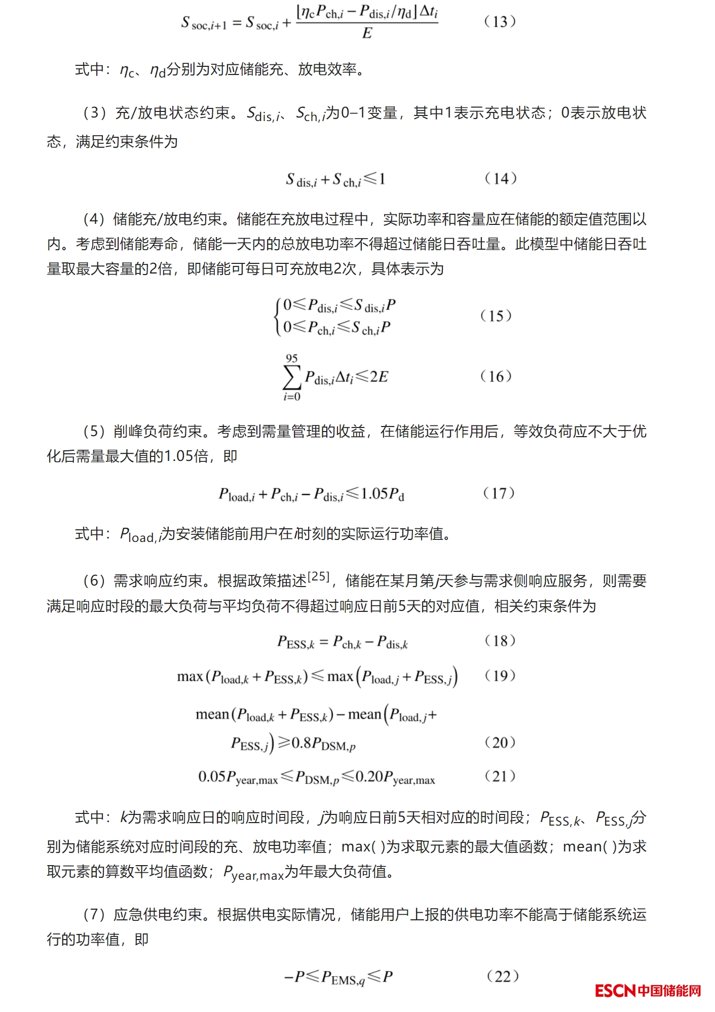 用戶側(cè)配置儲能系統(tǒng)可響應(yīng)輔助服務(wù)市場中各種電力政策以及相關(guān)服務(wù)應(yīng)用,為用戶提供直接收益[13-14]。目前儲能系統(tǒng)仍然存在投資成本較高和運行效率較低的問題[15-17],導致用戶配置儲能后不能充分地獲取其帶來的經(jīng)濟效益。因此,如何在考慮參與輔助服務(wù)的前提下,對儲能容量優(yōu)化配置和經(jīng)濟性分析具有重要意義。