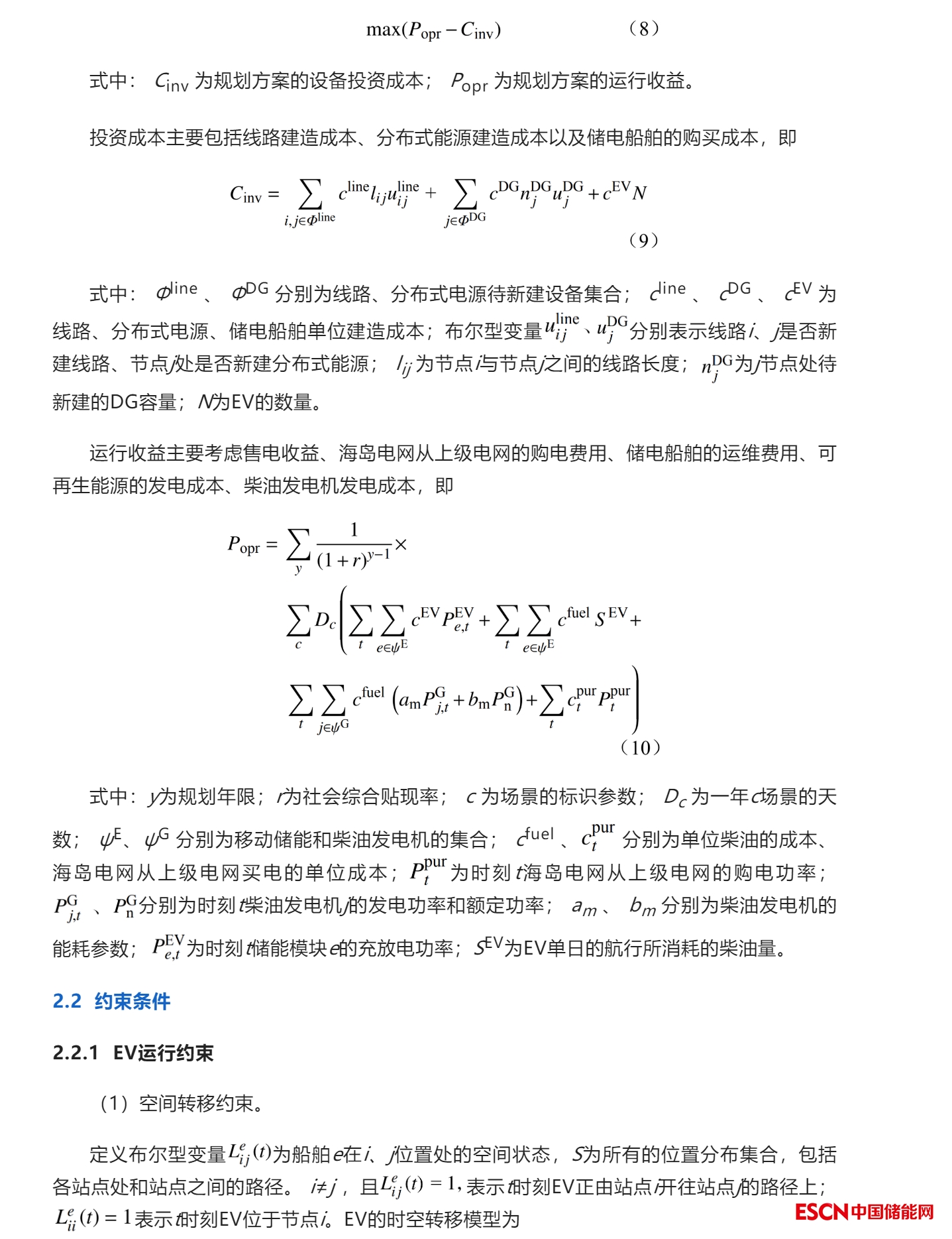 摘要:能源供給是近海海島開發(fā)的先決條件,純粹的獨(dú)立微網(wǎng)供能方式往往面臨著一定的可靠性問題,而海底電纜高昂的建設(shè)及維護(hù)成本,較大程度上限制了近海海島的開發(fā)和利用。為此,提出一種考慮儲(chǔ)電船舶(electric vessel,EV)參與的近海海島靈活供能網(wǎng)絡(luò)規(guī)劃策略。首先,針對(duì)典型近海人居島和資源島相對(duì)位置及其可再生能源出力特點(diǎn),提出包含EV能量鏈路、溝通人居島、資源島和大電網(wǎng)并網(wǎng)點(diǎn)的靈活供能網(wǎng)絡(luò)架構(gòu),以充分利用無人島上的可再生資源以及大電網(wǎng)的穩(wěn)定支撐能力;進(jìn)而,量化分析不同場(chǎng)景對(duì)EV交通轉(zhuǎn)移的時(shí)延特性影響,搭建EV時(shí)空轉(zhuǎn)移模型;以規(guī)劃期內(nèi)的海島電網(wǎng)收益最大為目標(biāo)函數(shù),建立連續(xù)-離散能量流混合網(wǎng)絡(luò)規(guī)劃模型。此外,提出了一種兩階段求解算法,第一階段預(yù)估EV數(shù)量,第二階段確定規(guī)劃模型的最優(yōu)解。仿真結(jié)果表明:所提規(guī)劃方案具有優(yōu)越性,為海島負(fù)荷供電及可再生能源開發(fā)利用提供了一種新的思路。