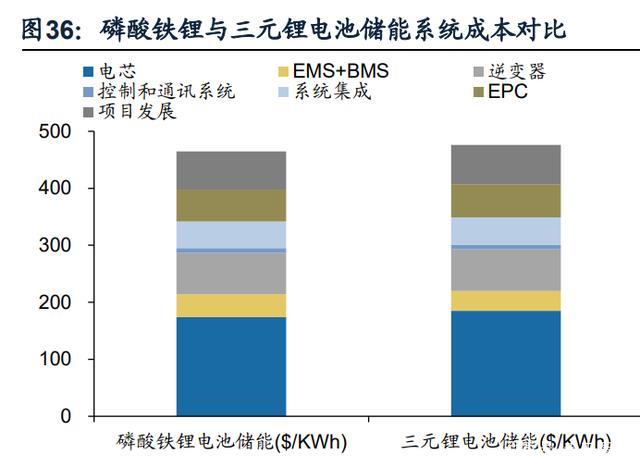 海外磷酸鐵鋰電池應(yīng)用于儲能領(lǐng)域的成本優(yōu)勢尚未凸顯。從海外儲能系統(tǒng)全產(chǎn) 業(yè)鏈成本構(gòu)成來看,儲能電池成本占比近 40%,而受制于海外磷酸鐵鋰發(fā)展較晚, 產(chǎn)業(yè)鏈配套相對滯后,磷酸鐵鋰電池成本優(yōu)勢尚未凸顯,根據(jù)美國能源部數(shù)據(jù),2020 年 10MW/40MWh 三元鋰電池儲能系統(tǒng)安裝成本平均 421 美元/KWh,而磷酸鐵鋰 電池儲能系統(tǒng)安裝成本平均 411 美元/KWh,差值較小。國內(nèi)則受益于新能源汽技 術(shù)進步疊加規(guī)模效應(yīng),動力電池價格在過去五年實現(xiàn)大幅下降,據(jù)鑫欏鋰電數(shù)據(jù), 2021 年二季度磷酸鐵鋰電池價格下探至 0.5-0.6 元/Wh,較 2016 年初的 2.6 元/Wh 降幅超 70%,相較于三元鋰電池價格低 20%以上,應(yīng)用于儲能領(lǐng)域優(yōu)勢凸顯。