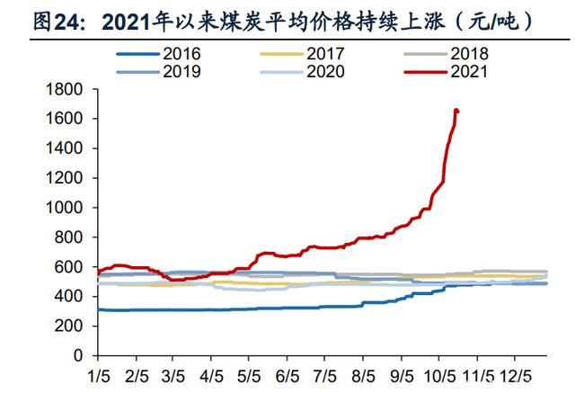 煤價高企下,“市場煤”與“計劃電”矛盾推動煤電交易全面市場化,價格機 制。2021年以來,受煤炭供需偏緊和全球大宗商品價格上漲影響,華北地區(qū)動力煤 價格由年初550元/噸上漲至十月中旬的1661元/噸,漲幅超200%,而煤電價格受“基 準(zhǔn)價+上下浮動”限制,火電盈利空間持續(xù)壓縮,煤價高企下火電廠商出現(xiàn)虧損,發(fā)電意愿持續(xù)受限,火電矛盾愈發(fā)突出。
