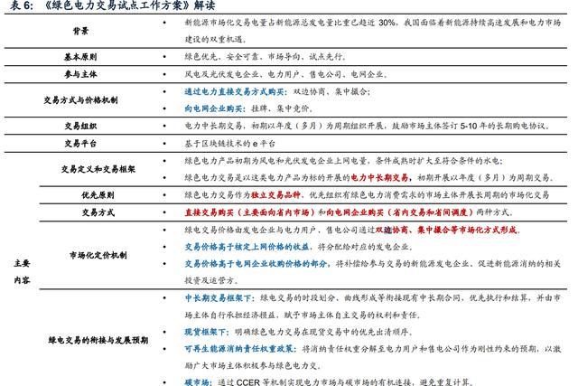 綠電交易凸顯清潔能源環(huán)境價值,風(fēng)光配儲價值進一步凸顯。在積極推動新一 輪電力體制改革的大背景下,新能源市場化交易電量占新能源總發(fā)電量比重已趨近 30%,新能源持續(xù)高速發(fā)展和電力市場建設(shè)為新型電力系統(tǒng)帶來雙重機遇。2021年 9月7日,國家發(fā)改委正式批復(fù)《綠色電力交易試點工作方案》,從交易框架、優(yōu)先 原則、交易方式、定價機制和發(fā)展預(yù)期五方面明確綠電交易的發(fā)展規(guī)劃,強化綠電 的綠色屬性和環(huán)境價值,通知印發(fā)后的首個交易日,首批綠電交易價格較當(dāng)?shù)仉娏?中長期交易價格溢價0.03-0.05元/千瓦時,溢價率約10%,綠電的高環(huán)境價值加速刺 激風(fēng)光儲一體化發(fā)展。