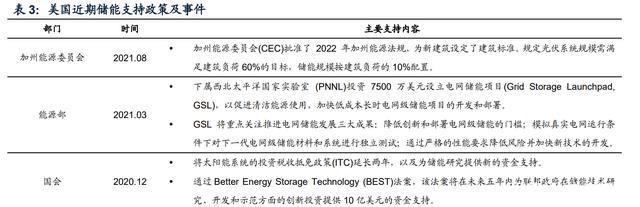 將儲能納入變革性能源技術(shù)予以支持。2021 年 3 月,美國能源部下屬西北太 平洋國家實驗室 (PNNL)宣布投資 7500 萬美元用于電網(wǎng)側(cè)儲能研發(fā),加快低成本 長時電網(wǎng)級儲能項目的開發(fā)和部署,提高電網(wǎng)的可靠性和靈活性以支持新能源汽車 增長帶來的終端電氣化趨勢。同年 1 月,美國能源部撥款 4700 萬美元支持含儲能 在內(nèi)的變革性能源技術(shù),將支持整個能源領(lǐng)域的高風(fēng)險和具有潛在顛覆性的新技術(shù), 加速能源創(chuàng)新技術(shù)由實驗室向商業(yè)化轉(zhuǎn)變,包括新能源汽車動力電池、數(shù)據(jù)中心儲 能、電網(wǎng)現(xiàn)代化改造、降低碳排放量等關(guān)鍵技術(shù)的進一步發(fā)展。