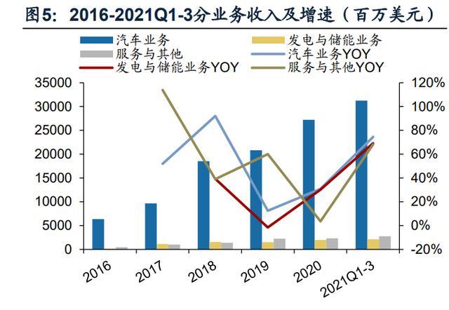 垂直整合能源產(chǎn)業(yè)鏈,構(gòu)筑光伏發(fā)電—儲能—電動車一體化清潔能源系統(tǒng)。特 斯拉不僅是新能源汽車制造企業(yè),更是可再生能源服務(wù)企業(yè),業(yè)務(wù)涵蓋新能源汽車、 新能源發(fā)電與儲能及配套服務(wù),包括新能源汽車的設(shè)計、開發(fā)、制造、銷售和租賃 以及充電服務(wù),是全球新能源汽車的開拓者與領(lǐng)軍者;新能源發(fā)電與儲能業(yè)務(wù)包括 光伏發(fā)電和儲能產(chǎn)品的設(shè)計、制造、安裝、銷售和租賃。公司垂直整合能源產(chǎn)業(yè)鏈, 構(gòu)筑從上游光伏發(fā)電、中游能源存儲到下游新能源汽車的一體化清潔能源系統(tǒng),通 過太陽能發(fā)電、電池儲電、電動車充電,多維度促使用戶最大化使用清潔能源、降 低用能成本、擺脫對化石燃料和電網(wǎng)的依賴,推動清潔能源體系的變革。