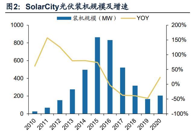 收購 SolarCity 切入屋頂光伏領(lǐng)域。2006 年馬斯克參與創(chuàng)立 SolarCity,公司 定位于城市與住宅聚集區(qū)光伏發(fā)電開發(fā),除普通購買模式外,SolarCity 創(chuàng)新性地提 供購電協(xié)議(PPA)和租賃模式,通過將屋頂光伏發(fā)電系統(tǒng)租賃給客戶收取租金或 與用戶簽訂售電協(xié)議收取電費。受益于美國的投資稅抵免和成本加速折舊等稅收優(yōu) 惠政策,SolarCity 光伏裝機規(guī)模發(fā)展迅猛,2012 年在加州居民與商業(yè)屋頂發(fā)電項 目占據(jù) 15%市場份額,2010-2015 年復(fù)合增速達 101%,由于公司經(jīng)營模式需預(yù)先 支付安裝太陽能電池板費用,前期投入成本較大,光伏項目回收期較長,債務(wù)高筑 拖累公司業(yè)務(wù)發(fā)展,其后裝機規(guī)模逐年遞減。2016 年特斯拉斥資 26 億美元收購 SolarCity,正式切入屋頂光伏領(lǐng)域。