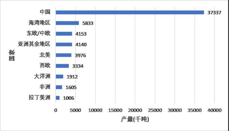 圖11 2020年世界鋁產(chǎn)量,數(shù)據(jù)來自statista