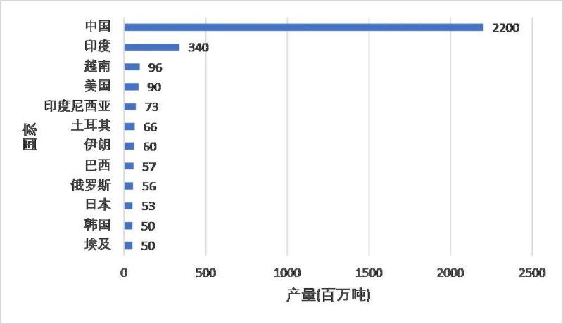 圖8 2020年世界主要水泥生產(chǎn)國產(chǎn)量,數(shù)據(jù)來自statista