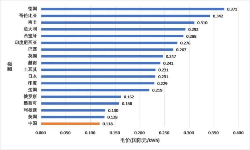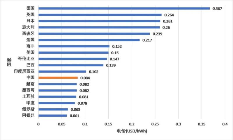 圖4 世界典型國家居民電價,數(shù)據(jù)來自statista