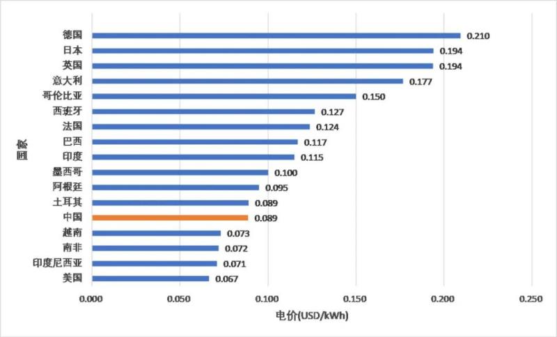 圖5 世界典型國家工業(yè)電價,數(shù)據(jù)來自statista