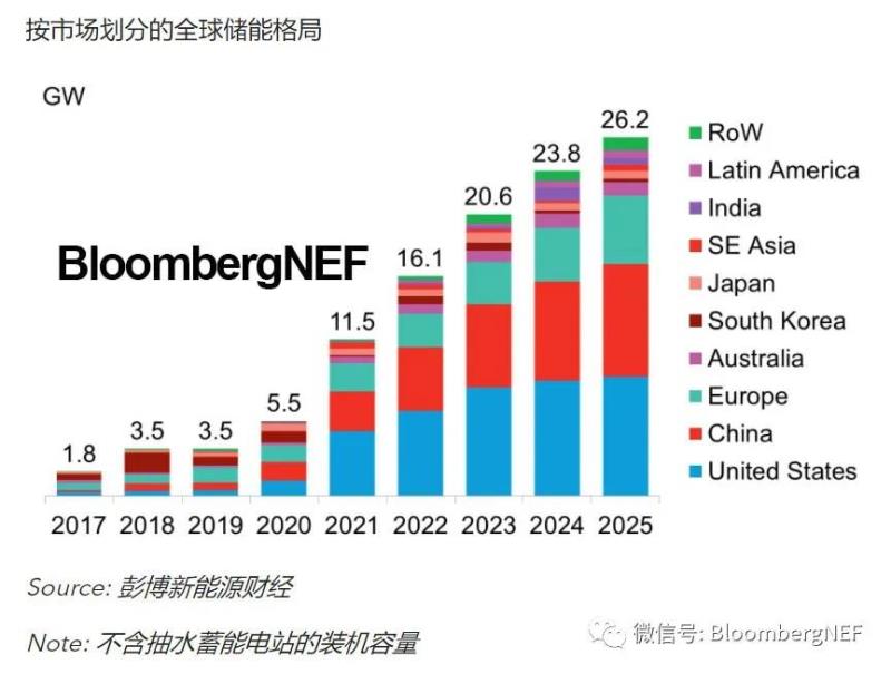 美國將是2021-2025年間的領(lǐng)跑者,在全球裝機(jī)量中的占比將達(dá)38%,其中加利福尼亞州、得克薩斯州和西南部地區(qū)領(lǐng)跑,而康涅狄格州和緬因州的儲(chǔ)能目標(biāo)也在提高。與此同時(shí),由于總統(tǒng)和國會(huì)都有意支持聯(lián)邦投資稅收抵免政策,市場(chǎng)情緒樂觀。