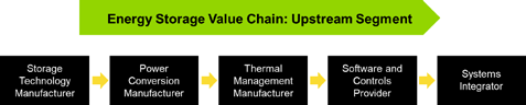 而儲能系統(tǒng)集成商一直是儲能價值鏈中最重要的角色之一。公用事業(yè)規(guī)模儲能系統(tǒng)(UES)價值鏈中包含的能力和服務(wù)包括多項技術(shù)功能、系統(tǒng)設(shè)計和后續(xù)服務(wù),這些服務(wù)將硬件和軟件轉(zhuǎn)變?yōu)榛趦δ芟到y(tǒng)的解決方案,并提供最大的投資回報。儲能系統(tǒng)集成商通?;钴S在儲能價值鏈的所有上游環(huán)節(jié),如圖1所示。然而這些公司的主要重點是提供軟件和控制以及實際的集成服務(wù)。