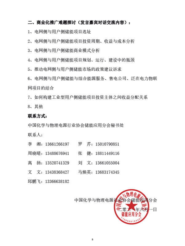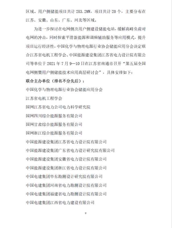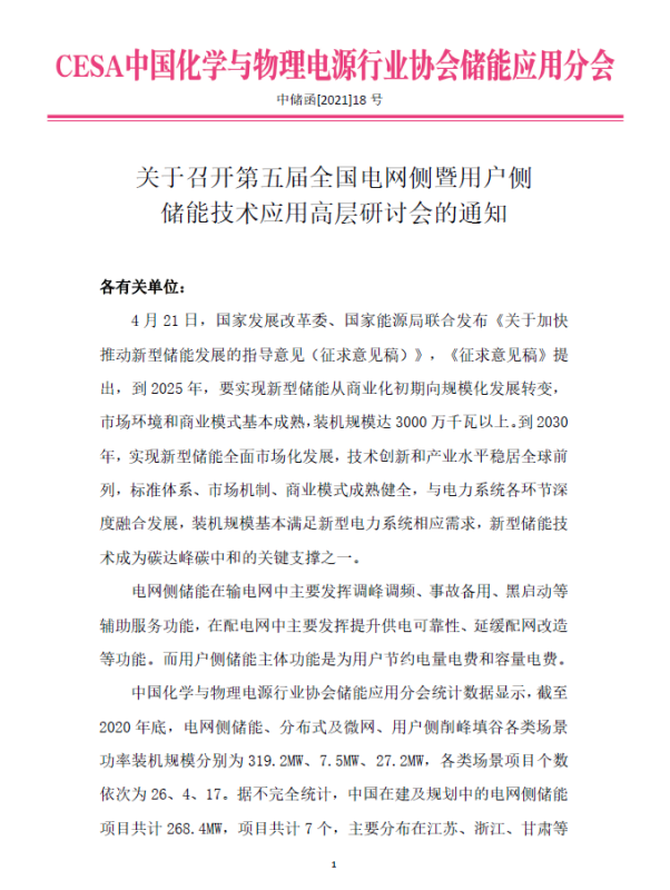 關(guān)于召開第五屆全國電網(wǎng)側(cè)暨用戶側(cè)儲(chǔ)能技術(shù)應(yīng)用高層研討會(huì)的通知