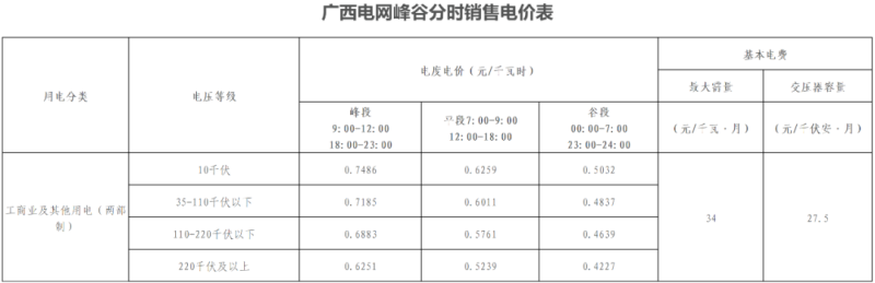 3.廣西電網(wǎng)峰谷分時(shí)銷售電價(jià)表隨目錄銷售電價(jià)調(diào)整。