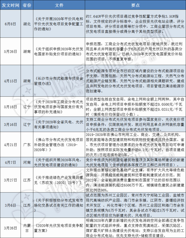 據(jù)小編統(tǒng)計(jì),進(jìn)入2020年以來,江蘇、內(nèi)蒙古、河南、廣東、遼寧、湖南、湖北等省份均先后出臺了多項(xiàng)利好分布式光伏項(xiàng)目的政策。