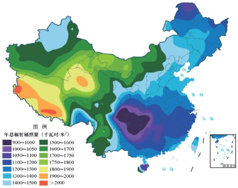 圖2 我國太陽能輻照強(qiáng)度