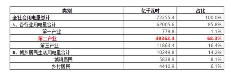 根據(jù)2019年全社會用電量情況,按照行業(yè)用電占比不同,會有不同的答案。以下采用中電聯(lián)發(fā)布的數(shù)據(jù)。