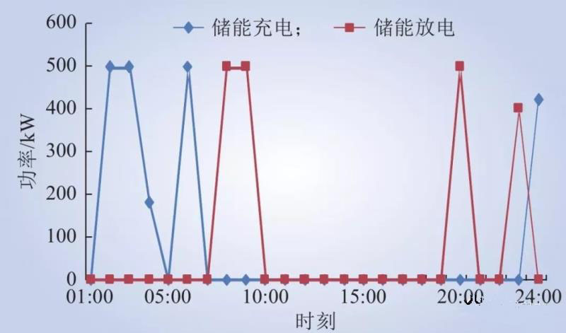 儲能單元在配電網(wǎng)的谷時電價時段進行充電,在其余時段均進行放電的運行方式,以此減少微電網(wǎng)從配網(wǎng)的購電量。