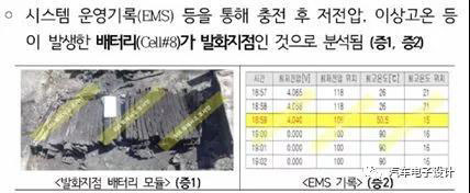 三星SDI電池也遇到了問(wèn)題,根據(jù)檢查小組分析EMS的歷史記錄,存在部分電芯的電壓吵過(guò)了電池企業(yè)的建議的上限充電電壓(4.15V)30mV,并且連續(xù)壓差超過(guò)400mV。此外,去年6月24日的EMS記錄電芯在SOC為0%時(shí)放電約3分鐘的情況。