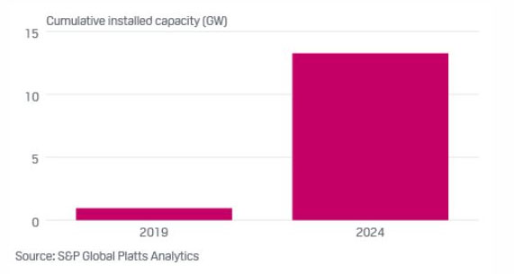 美國(guó)各州政策和峰值容量需求將仍然是促進(jìn)電池儲(chǔ)能系統(tǒng)部署的主要驅(qū)動(dòng)力。普拉茨分析公司預(yù)計(jì),到2024年,美國(guó)將有裝機(jī)容量為13GW以上的電網(wǎng)規(guī)模電池儲(chǔ)能系統(tǒng)投入使用。