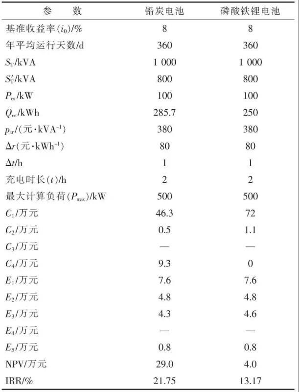 由表4 計算結(jié)果可知, 在浙江當前的峰谷電價條件下, 由于缺少基本電費收益, 10 kV 一般工商業(yè)用戶建設(shè)磷酸鐵鋰電池儲能無法盈利, 鉛炭電池儲能可勉強實現(xiàn)盈利, 內(nèi)部收益率為4.23%。