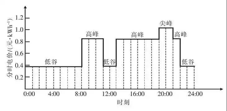 在分時電價機制下, 用戶通過儲能系統(tǒng)在低谷電價時段充電, 在高峰、 尖峰電價時段放電,從而實現(xiàn)峰谷差套利, 減少購電費用。
