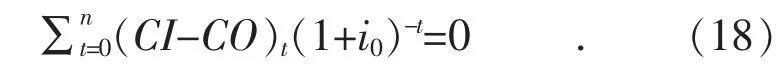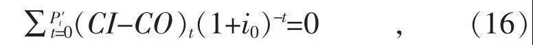 式中:CI 為現(xiàn)金流入量;CO 為現(xiàn)金流出量;i0 為基準收益率;Pt′為動態(tài)投資回收期。(2)NPV 計算