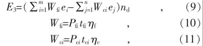 式中:m 為一天內(nèi)m 個放電時段;n 為一天內(nèi)n個充電時段;W fi 為第i 個放電時段放電電量;ei為第i 個放電時段用戶用電電價;W c i為第i 個充電時段充電電量;ej 為第j 個充電時段用戶用電電價;n d 為儲能系統(tǒng)年平均運行天數(shù);P f i 為第i個放電時段放電功率;P c i 為第i 個充電時段充電功率;t f i 為第i 個放電時段放電時長;t c i 為第i 個充電時段充電時長;ηf 為平均放電效率;ηc 為平均充電效率。