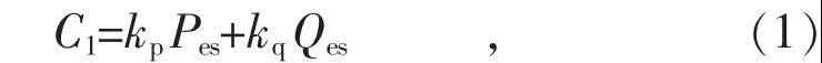 式中:C1 為儲能系統(tǒng)初始投資成本;P es 為儲能系統(tǒng)額定功率;Q es 為儲能系統(tǒng)容量;k p 為與儲能系統(tǒng)輸入、 輸出的峰值功率相關(guān)的成本系數(shù);k q 為與儲能系統(tǒng)容量相關(guān)的成本系數(shù)。