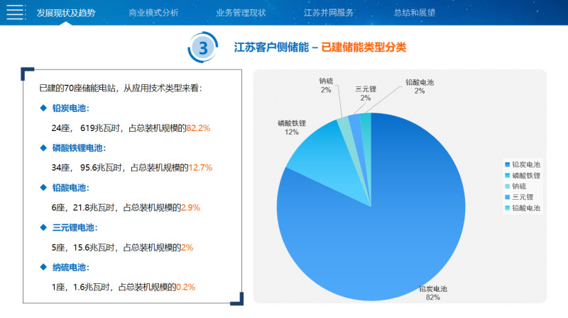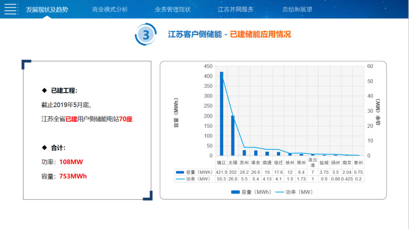 省內(nèi)的客戶側(cè)儲(chǔ)能主要供應(yīng)商為南都電源、太湖能谷、中天科技、力信能源和杉杉能源,占到90%以上,太湖能谷主要是用的鉛酸電池。