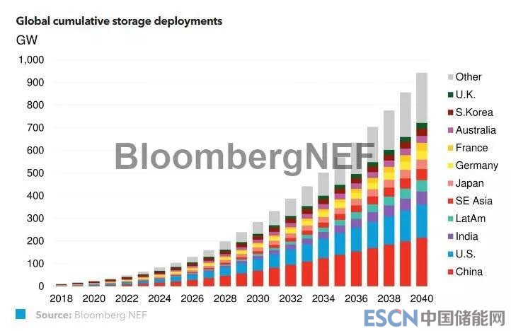 至2040年,全球儲(chǔ)能項(xiàng)目累計(jì)裝機(jī)規(guī)模將達(dá)942GW/2,857GWh