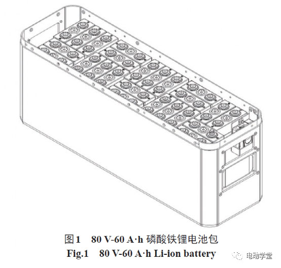 本項(xiàng)目選用從換電站退役的80V-60A·h磷酸鐵鋰電池包,這批電池于2011年10月出廠,2018年底陸續(xù)退役。其電芯采用中航鋰電3.2V-60A·h方形鋁殼磷酸鐵鋰電池,由24個(gè)電芯串聯(lián)的方式得到電池包。電池包內(nèi)部結(jié)構(gòu)圖如圖1所示。
