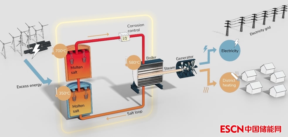 這個(gè)1MW/20MWh熱儲能系統(tǒng)采用專有的腐蝕控制技術(shù),將是全球第一個(gè)部署氫氧化物熔融鹽的熱儲能系統(tǒng)。它將為當(dāng)?shù)仉娋W(wǎng)提供熱量、電力和輔助服務(wù)。