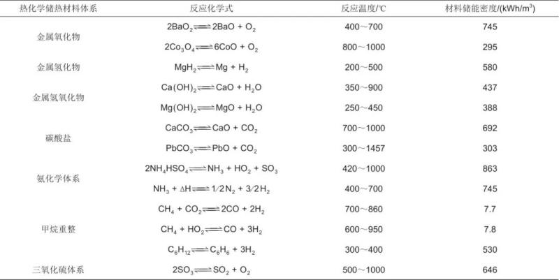 表4 常見化學(xué)儲熱體系的儲能密度及溫度