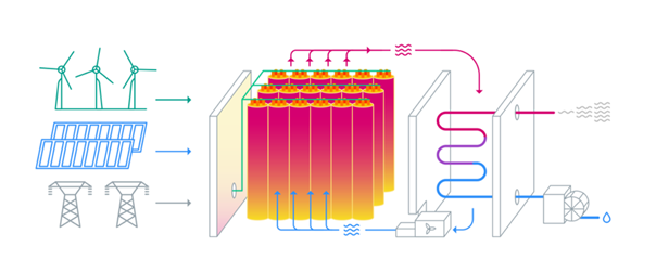 和大多數(shù)儲(chǔ)能技術(shù)類似,Rondo熱電池的工作原理非常簡單,吸收間歇性可再生能源將之轉(zhuǎn)化為持續(xù)的熱能,支持工業(yè)生產(chǎn)流程。