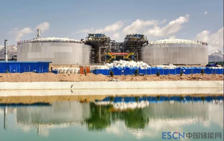 儲(chǔ)能系統(tǒng)由大容量?jī)?chǔ)罐、儲(chǔ)熱介質(zhì)、熔鹽泵和油鹽換熱器等主要設(shè)備組成。儲(chǔ)熱介質(zhì)通常是低成本、高穩(wěn)定性、對(duì)環(huán)境無(wú)污染的熔融鹽——液態(tài)的二元硝酸鹽混合物,常溫下的硝酸鹽是固態(tài)顆粒,通過(guò)加熱升溫的方法,將其熔化成液體,熔化的過(guò)程則被稱為“化鹽”。