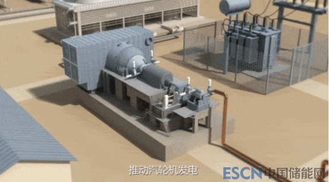 這里便是電站的儲(chǔ)熱島,白天將多余的熱量?jī)?chǔ)存起來(lái),晚上再釋放繼續(xù)發(fā)電。因此,光熱電站可以24小時(shí)連續(xù)穩(wěn)定發(fā)電。