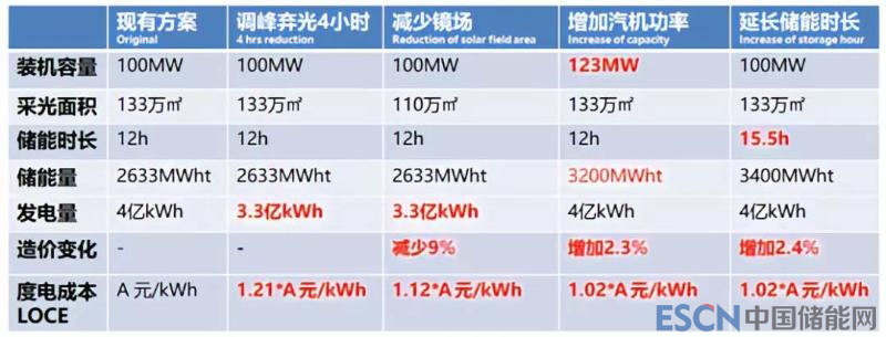 (2)系統(tǒng)優(yōu)化:為適應(yīng)于調(diào)峰需求,系統(tǒng)設(shè)計(jì)需調(diào)整:同等采光面積下(同等土地面積),增加儲能時(shí)長,或:同等采光面積下,增加汽輪機(jī)額定功率。