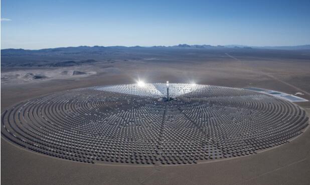 圖:全球裝機(jī)規(guī)模最大的熔鹽塔式項(xiàng)目新月沙丘電站