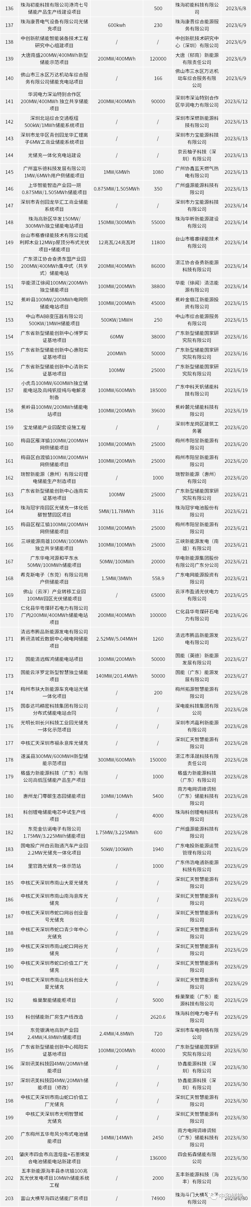 據統(tǒng)計,目前僅5~6月,廣東省儲能建設項目備案就達到203個,位居全國第一。