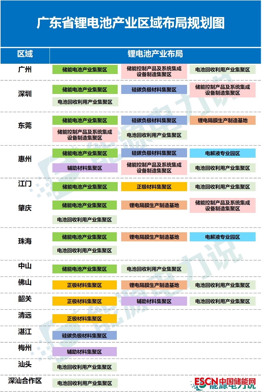 鋰電池作為新型儲(chǔ)能的主力軍,《指導(dǎo)意見(jiàn)》明確了包含電池、正負(fù)極材料、隔膜、電解液、系統(tǒng)集成、輔助材料等鋰電池產(chǎn)業(yè)鏈各核心環(huán)節(jié)的生產(chǎn)制造區(qū)域布局規(guī)劃圖。