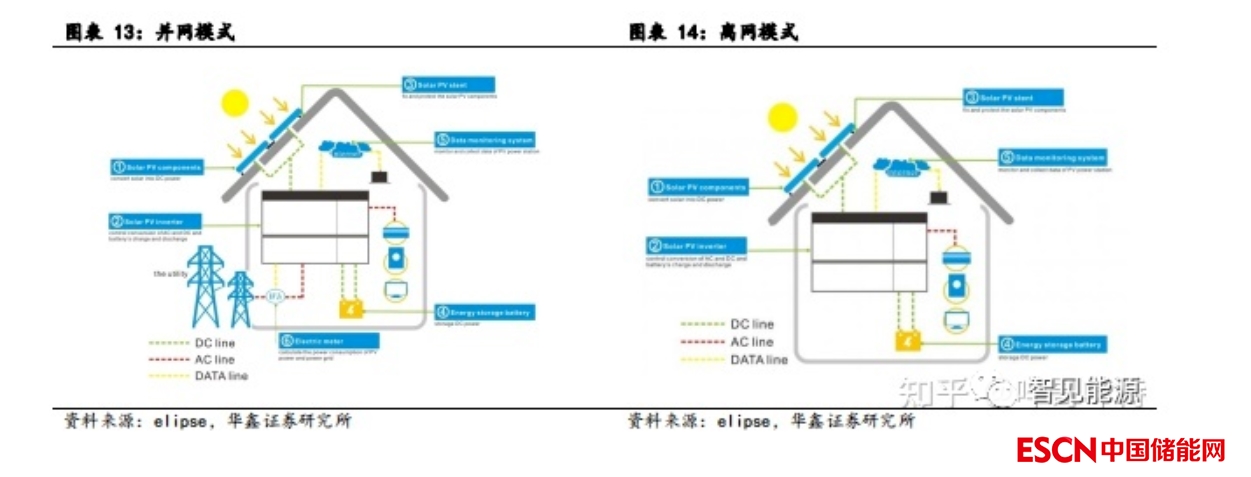 整體來說,戶用儲能精致美觀,便于安裝,配備長壽命鋰離子電池,同時與光伏相結合,可以為住宅、公共設施場所、小型工廠所等提供電力需求。根據耦合方式不同、是否并入電網,戶用儲能主要可以分為混合式家庭光伏+儲能系統(tǒng)、耦合型家庭光伏+儲能系統(tǒng)、離網型家庭光伏+儲能系統(tǒng)、光伏儲能能源管理系統(tǒng)四種。